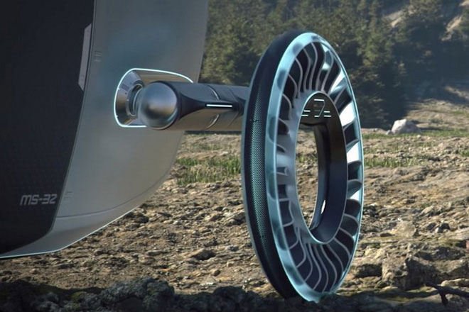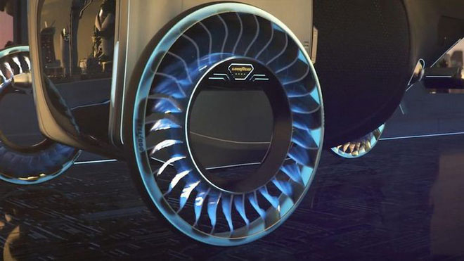 Lốp xe kiêm cánh quạt: Là bánh xe đi trên mặt đất nhưng có thể biến thành cánh quạt khi bay