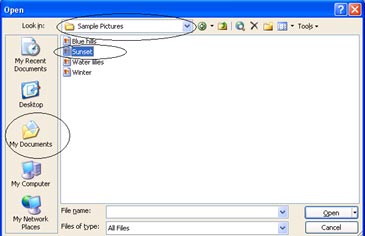 Bước 2. Chọn File > Import > Import to Stage, vào thư mục (ổ hệ thống):\Documents and Settings\All Users.WINDOWS\Documents\My Pictures\Sample Pictures chọn hình có tên là Sunset (xem hình 2a, 2b)