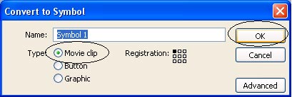 Bước 5. Trong hộp thoại hiện ra chọn Movie Clip và nhấn OK (xem hình 5)