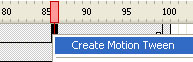 Kích chuột phải vào bất cứ vị trí nào trên vùng màu xám giữa hai keyframe và chọn Create Motion Tween từ menu xuất hiện.
