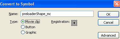 Nhấn phím Ctrl + A (Chọn toàn bộ) và sau đó nhấn phím F8 (Convert to Symbol) đê chuyển toàn bộ hình vẽ trên sang Movie Clip Symbol. Xem hình dưới.