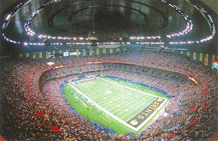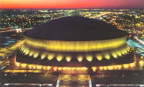 Mái bát úp siêu lớn, công trình thật lộng lẫy ở New Orleans, có thể chứa đến 87.000 người một cách an toàn, nhân dịp Đức Giáo Hoàng đến thăm cho đến các trận đá banh hay sô diễn của một nghệ sĩ nhiều người ái mộ. |