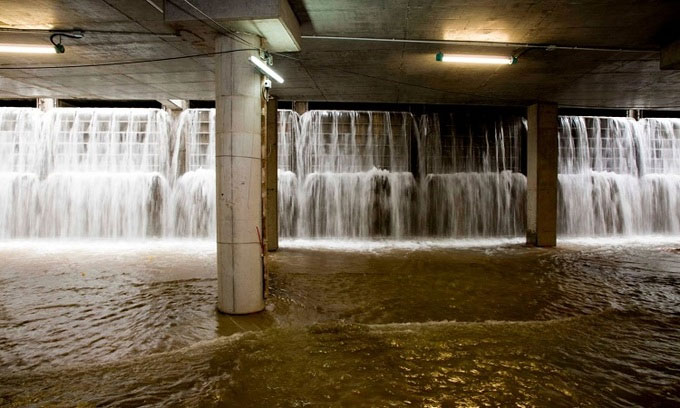 Nhờ xây đường hầm thoát nước dưới lòng đất, Hong Kong đã giảm đáng kể thiệt hại về người và của do mùa mưa bão hàng năm gây ra.
