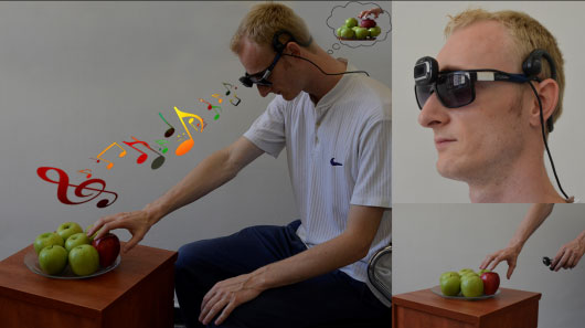 Các nhà nghiên cứu Đại học Hebrew (Israel) đã tạo ra thiết bị Eyemusic sử dụng âm nhạc để chuyển tải thông tin hình ảnh giúp người khiếm thị dễ thực hiện công việc hơn.