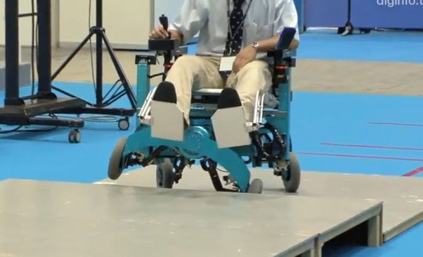 Học viện Công nghệ Chiba ở Tokyo (Nhật Bản) mới sáng chế ra loại xe lăn mới có "chân" để bước qua chướng ngại vật, như bậc thang.