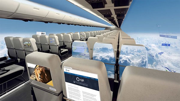 Một hãng hàng không vũ trụ của Anh mới công bố hình ảnh mô hình máy bay không cửa sổ, thay vào đó là hệ thống màn hình hiển thị cảnh quan xung quanh hay chiếu phim trực tiếp.