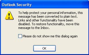 Nếu click vào một link mà Outlook đã vô hiệu hóa thì hộp thoại Outlook Security sẽ xuất hiện.