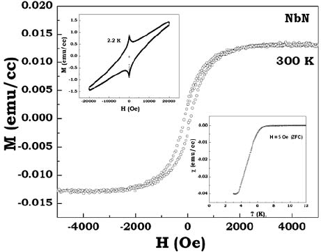 Hình 2. Tính sắt từ (đường cong từ trễ) trong các hạt nano của hợp chất NbN (Sol. Stat. Comm).