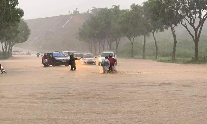 Tại TP Lào Cai (Lào Cai), mưa lớn cục bộ đã khiến một số tuyến đường ở vùng trũng thuộc các xã như Bắc Cường, Nam Cường, Bình Minh, Bắc Lệnh bị ngập. Phương tiện không thể đi qua, nhiều xe bị mắc kẹt giữa điểm ngập hơn 50 cm.
