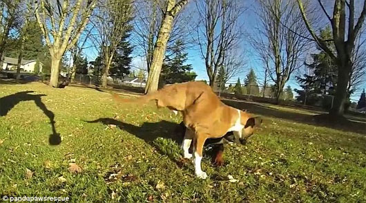 Dù bị mất hai chân sau nhưng chú chó Duncan Lou không hề tỏ ra ủ rũ hay buồn rầu. Nó vẫn sống đầy nghị lực và thậm chí, còn nhảy nhót vui nhộn.