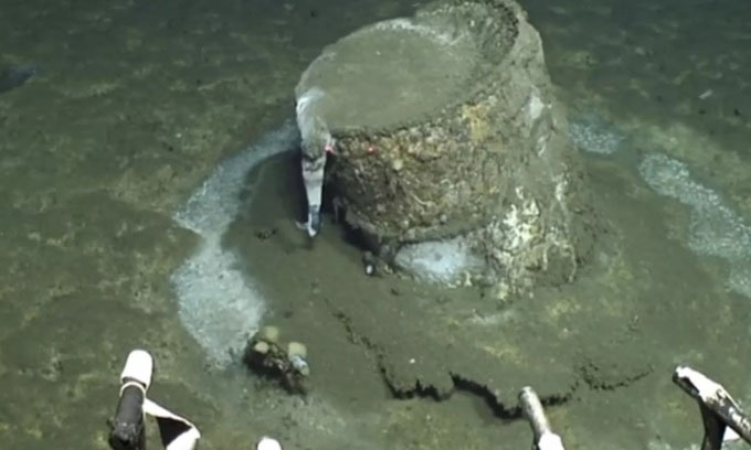Thùng chứa chất thải đang han gỉ ở độ sâu 91 m dưới nước gần đảo Santa Catalina. (Ảnh: David Valentine / ROV Jason).