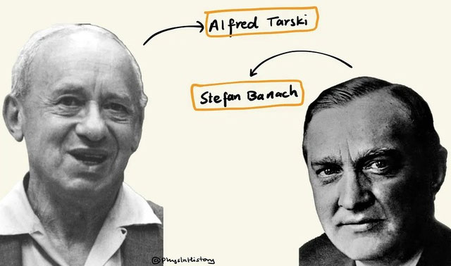 Năm 1924, nhà toán học Ba Lan Stefan Banach (1892-1945) và Alfred Tarski (1901-1983) đã phát hiện ra một sự thật toán học đáng ngạc nhiên. Tức là "chia một quả bóng thành một số phần giới hạn và kết hợp lại các phần này để tạo thành hai quả bóng có cùng kích thước với quả bóng ban đầu". Nói cách khác, nếu bạn chia và đập một quả bóng rồi kết hợp nó lại, bạn có thể có được hai quả bóng giống hệt nhau! Ở đây, mặc dù các biến dạng như kéo dài và rút ngắn bị cấm đối với các bộ phận được phân chia nhưng chúng có thể được dịch chuyển và xoay khi lắp ráp lại.