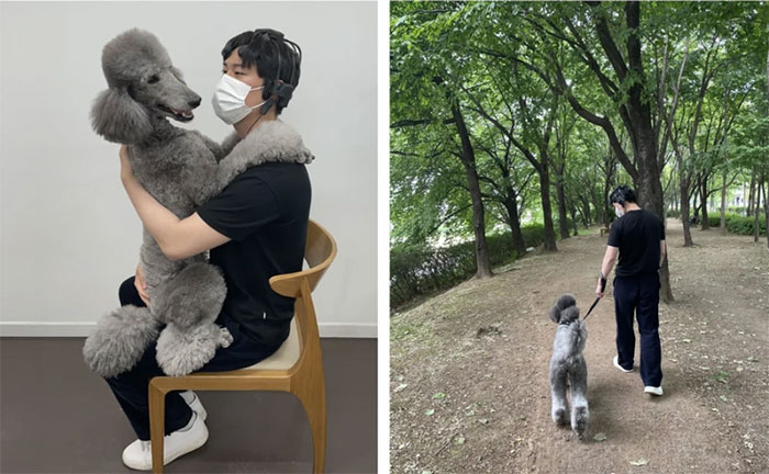 Một trong số những người tham gia vào thí nghiệm tương tác với con chó poodle tên là Aro, do các nhà nghiên cứu Hàn Quốc thực hiện. (Ảnh: Onyoo Yoo).