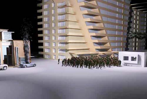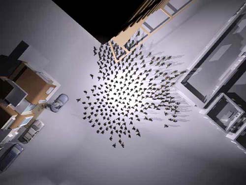 Đầu tiên, mô hình 3 chiều này chứa những kiểu chuyển động và hành vi của con người, và sử dụng chúng để mô phỏng một đám đông cũng như thói quen của người đi bộ trong những kiểu toà nhà nào đó.