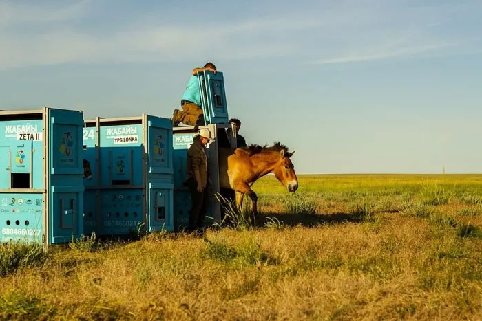 Sau khi được vận chuyển bằng máy bay của quân đội Séc từ Praha và Berlin (Đức) đến thành phố Arkalyk ở Kazakhstan, 7 con ngựa đầu tiên đã tiếp tục trải qua hành trình kéo dài 7 giờ bằng xe tải đến khu vực thảo nguyên.