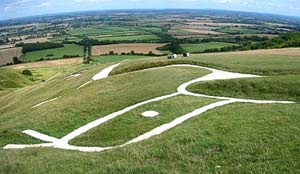 Con ngựa trắng Uffington có chiều dài 114m và chiều cao gần 34m, được vẽ bằng bột đá. Đây là một trong những hình vẽ trên đồi cổ nhất ở Anh.
