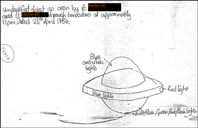 Đây là những thông tin nằm trong bản tài liệu mật của Bộ Quốc phòng Anh, thu thập tất cả những báo cáo của người dân trong nước về những lần nhìn thấy vật thể lạ. Quyết định công bố những tài liệu này của chính phủ Anh nằm trong chương trình giải mật kéo dài 4 năm đối với tất cả những tài liệu liên quan đến UFO kể từ năm 1978 đến nay.