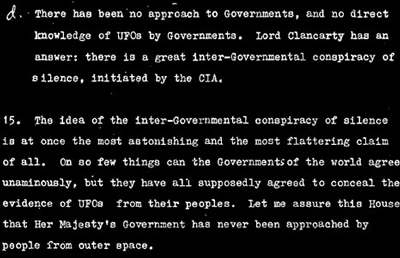 Báo cáo của chính phủ vào năm 1979 trước quốc hội Anh, khẳng định không có động cơ chính trị trong những vụ việc liên quan đến các báo cáo về người ngoài hành tinh. |