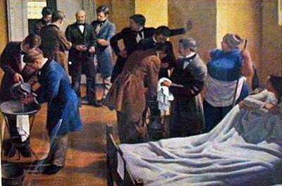Cho đến những năm 1800, tình trạng ô nhiễm trong bệnh viện không cải thiện được bao nhiêu. Hệ thống nước, hệ thống xử lý chất thải rất thô sơ, lạc hậu. Phẫu thuật viên thường lau chùi dụng cụ trên chính quần áo của mình. Hiếm khi vải trải giường cho người bệnh mới được thay. Nhiễm khuẩn lan tràn dữ dội. Đặc biệt, tại các khoa sản, nhiễm khuẩn trong thời kỳ sinh nở là mối hiểm họa cho người mẹ. Lúc bấy giờ, chỉ có một vài người có tầm nhìn xa trông rộng, ý thức được mối tương quan giữa nhiễm bẩn và bệnh tật.