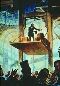 Thang máy đầu tiên dùng cho công chúng được khánh thành năm 1857 tại New York. Do Elisha Graves OTIS, người Mỹ, chế tạo cho E.V. HAUGHTWOUT & Co., một cửa hàng cao 5 tầng ở Broadway. Ông OTIS đã giới thiệu thang máy có thắng đầu tiên tại Nữu Ước năm 1852, thang máy thủy lực (Ascenseur hydraulique) 1867