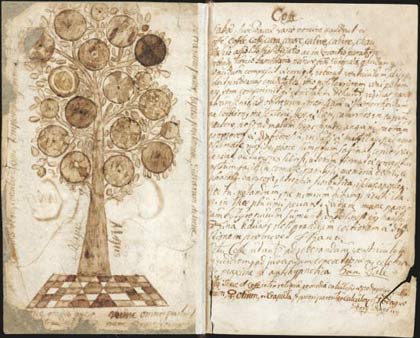 Trang bìa và "may tree" từ Örtaboken, bản thảo của Linnaeus được biết