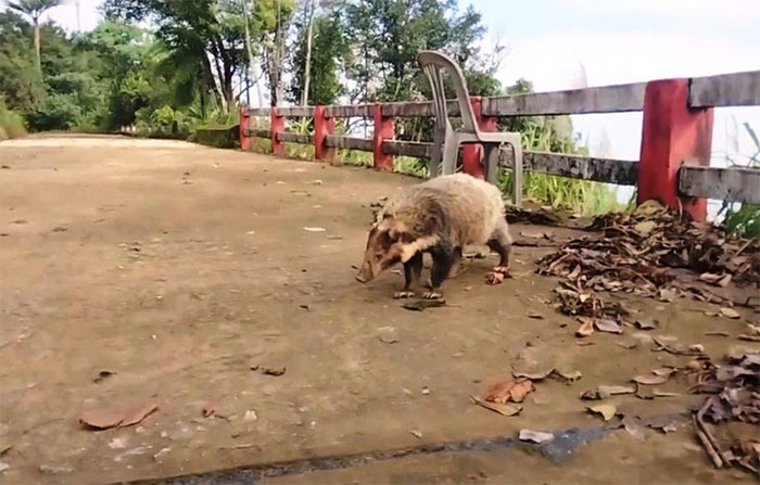Theo đó chú lửng lợn mà nhân viên của rừng bắt gặp khá lớn, đang đi thong dong trên một tuyến đường tuần tra của kiểm lâm để kiếm ăn. Nó không hoảng sợ mà còn lững thững tiến lại khá gần nhân viên của Vườn quốc gia Bạch Mã.