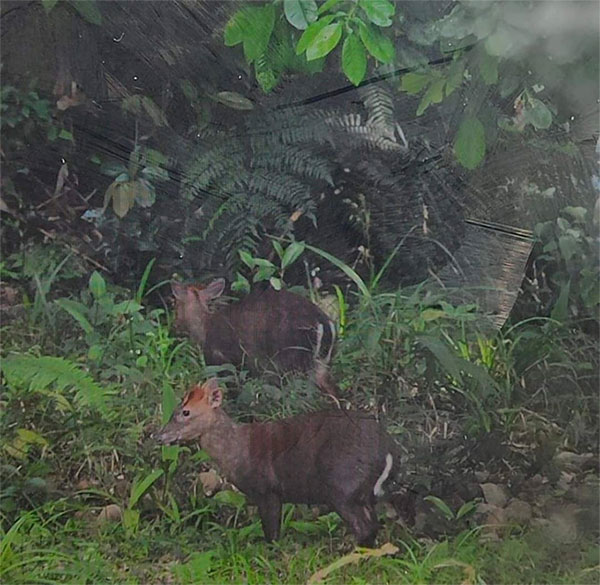 Một du khách khi tham quan rừng Bạch Mã đã may mắn chụp lại cảnh hai chú mang Trường Sơn quý hiếm đi kiếm ăn - (Ảnh: V.LINH).