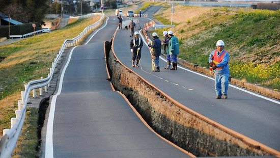 Một đoạn đường bị trận động đất năm 2011 tàn phá