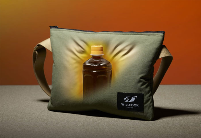 Sản phẩm này có tên là “Willcook”, được làm từ một loại vải cải tiến do công ty Sanki Consys Co. Ltd. của Nhật Bản phát triển. Nếu chỉ nhìn từ bên ngoài, trông nó không khác nào một chiếc túi đeo chéo hay túi đựng laptop thông thường. Nhưng đúng như tên gọi, túi có thể hâm nóng mọi thứ được đặt bên trong túi với nhiệt độ lên tới 80°C chỉ trong 5 phút, hệt như một chiếc lò vi sóng thứ thiệt.