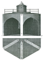 Những dải cát ngầm gần nơi cửa sông luôn rất nguy hiểm cho tàu bè qua lại. Do đó, những chiếc thuyền có đèn báo như thế này rất cần thiết. Những chiếc đầu tiên đã hoạt động tại các bờ biển ở Hà Lan vào thế kỷ 15. Nhưng nổi tiếng hơn cả là một chiếc tàu-hải đăng neo đậu tại cửa sông Thames vào năm 1732 và sau đó là một đội thuyền có đèn báo được bố trí dọc theo bờ biển nước Anh trong suốt những năm 1780. | Từ đầu thế kỷ 19, người ta đã chế tạo ra các thấu kính hội tụ nhằm mục đích tập trung mạnh hơn lượng ánh sáng phát ra. Những thấu kính lớn này có thêm những vòng rãnh tròn đồng tâm quanh một thấu kính nhỏ ở giữa. Kết cấu này giúp chiếc gương nhẹ hơn nhưng vẫn có thể khuếch đại được lượng ánh sáng lên gấp 4 lần so với loại gương phản xạ cổ điển. | |