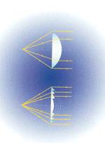 Một bộ gương thấu kính nặng đến 5 tấn và được thiết kế quay tròn trên những gối đệm ru-lô. Vận động xoay tròn của thấu kính được điều khiển theo cơ chế cơ học của đồng hồ. Nhưng vận tốc quay của ngọn đèn hải đăng này khá chậm. | Ngọn hải đăng được lắp đặt tại Chassiron (Pháp) vào năm 1825 đã được cải tiến phần thấu kính. Đây là một thấu kính có dạng ống tròn thẳng đứng, bên trong được lắp nhiều lăng kính tròn để tập trung ánh sáng nhận được vào trung tâm của vòng tròn. | |