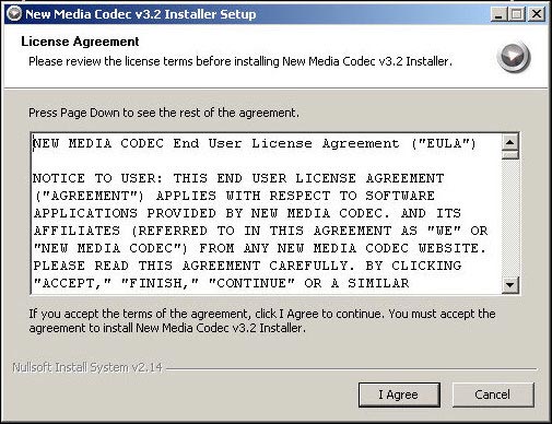 Bạn có nghĩ đây là malware độc hại? Thậm chí cuộc tấn công bằng cách cài đặt mã codec này còn 'siêu' hơn ở chỗ hiển thị một giao diện xác nhận đồng ý bản quyền trong quá trình cài đặt (Ảnh: Sunbelt Software):