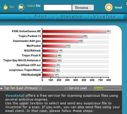 Nếu thấy nghi ngờ một file nào đó, hãy tải nó lên trang Virustotal.com, nơi hỗ trợ hơn 30 công cụ quét virus khác nhau để kiểm tra: