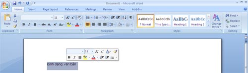 Chỉ cần bôi đen văn bản bạn sẽ thấy ngay bảng định dạng xuất hiện |