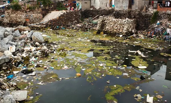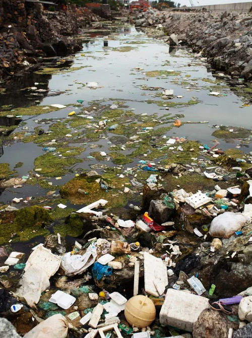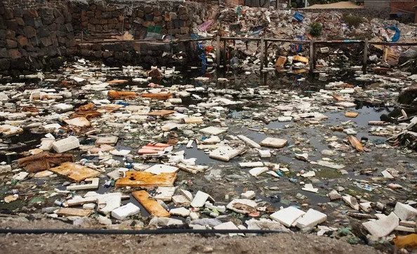 Đủ mọi rác thải nổi lềnh bềnh.