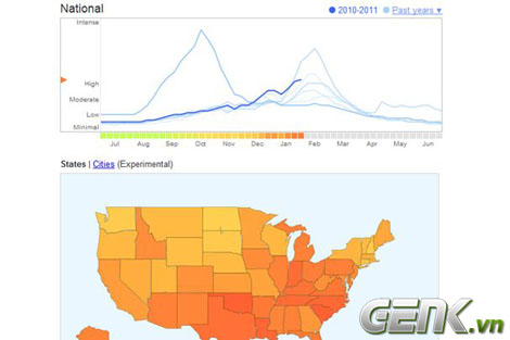 Bệnh cúm là một bệnh hay gặp song không phải ai cũng lường hết tác hại của nó. Hàng năm, rất nhiều người đã phải chia tay cuộc sống tươi đẹp bởi căn bệnh quái ác này. Vậy là Google đã tạo ra Google Flu Trends với mục đích hiển thị những vùng bị ảnh hưởng nhiều nhất bởi cúm hàng năm. Thêm một phát minh phục vụ cho lĩnh vực y tế khi giúp các nhà khoa học dự đoán được hướng phát triển và khả năng lan rộng của dịch bệnh.
