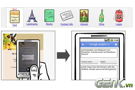 Google Goggles là công cụ cho phép bạn tìm kiếm trên Google bằng hình ảnh thay vì bằng từ hoặc chữ. Tải lên một bức ảnh bạn có về một thứ gì đó muốn tìm thêm thông tin – chẳng hạn như địa điểm của bức ảnh đó – và Google sẽ tự động thực hiện phần việc còn lại.