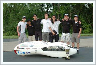Với khả năng chạy 3.145 dặm (5.060 km) chỉ với một gallon (3,8 lít) ga, chiếc Mark V làm bằng sợi carbon nặng 36kg đã thắng cuộc trong giải đua xe tiết kiệm nhiên liệu Supermileage năm 2006 ở bang Michigan (Mỹ), cho nhóm sinh viên cơ khí Canada thuộc Đội đua Supermileage Đại học British Columbia. Chiếc xe của họ có phần thân dưới cong, một động cơ 54 cc cực kỳ tiết kiệm nhiên liệu. Khi điều khiển xe, người lái phải chịu khó ngã mình về sau.