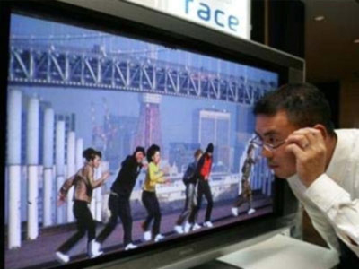| Một người đàn ông đang "tham quan" mẫu TV SED do Toshiba trưng bày tại triển lãm CES 2006. Nguồn: AP |