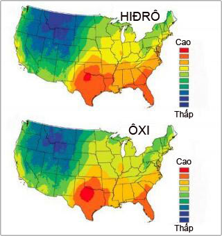 Những yếu tố này giải thích tại sao tỉ lệ đồng vị ôxi 18 và đồng vị hiđrô 2 trong nguồn nước uống lại giảm nhiều khi đi sâu vào lục địa từ bờ biển phía tây (nơi những có những cơn bão mùa đông lạnh lẽo) trong khi vẫn duy trì ở mức cao ở sâu trong lãnh thổ từ vịnh Gulf cho đến bờ biển Đại Tây Dương phía nam (nơi những đám mây có nhiệt độ cao hơn).