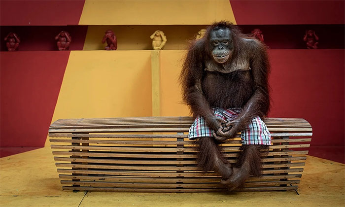 Dù đẹp mắt, bức ảnh phơi bày trò đấu tàn nhẫn là đười ươi đấm bốc. Trò đấu này khiến những con đười ươi bị trừng phạt và không cho ăn để huấn luyện chúng chiến đấu với nhau. Nhiếp ảnh gia Aaron Gekoski đến từ Anh chia sẻ ông chụp bức ảnh này sau khi trận đấu kết thúc và chờ con vật lấy lại sức lực. (Ảnh: Aaron Gekoski)