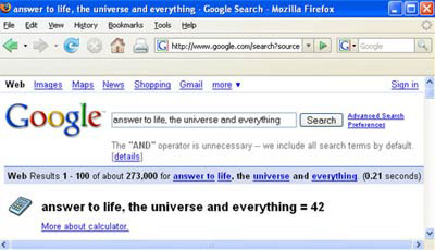 Google Calculator cho phép mọi người nhập phép tính (như 1999 x 1888 =) vào hộp tìm kiếm và Google sẽ hiển thị kết quả. Tuy nhiên, phần mềm này đôi khi còn tính cả chữ cái, như khi từ khóa "answer to life the universe and everything", "number of horns on a unicorn", "once in a blue moon"...