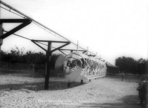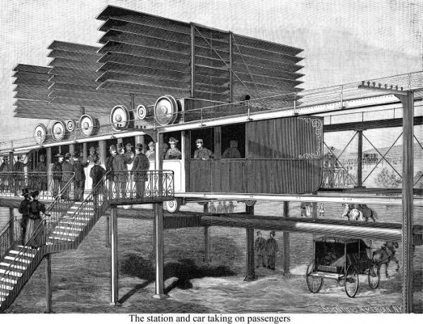 Năm 1910, J.W. Fawkes đã trình làng một mẫu tàu treo được cho là có thể đạt tới vận tốc gần 100km/h. Toa tàu được gắn vào một đường ray trên cao, với sự hỗ trợ của các thanh gỗ trợ lực. Tàu được trang bị động cơ làm mát Frankline, với một cánh quạt gắn phía trước.