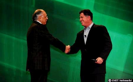 Michael Dell (phải) đang bắt tay với CEO của AMD, ông Hector Ruins