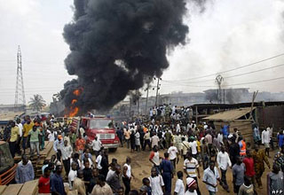 Hôm qua, một tuyến đường ống dẫn dầu phát nổ và bốc cháy dữ dội tại Lagos, trung tâm tài chính lớn nhất Nigeria. Theo thống kê ban đầu có 260 người chết và 60 người bị thương, nhưng số thương vong thực tế được dự đoán còn cao hơn nhiều.