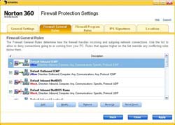 Firewall Protection có thể được cấu hình đến từng chi tiết nhỏ nhất, thiết lập những quy định chung cho chương trình, tường lửa cũng như IPS (Intrusion Prevention Signatures). Thiết lập Firewall Settings hỗ trợ nhập các vùng tin cậy (trusted zone), thiết lập cấp độ bảo mật, chọn những xử lý có thể truy cập vào Internet hoặc quyết định tường lửa sẽ giải quyết ra sao với các gói dữ liệu mạng ra hay vào hệ thống.