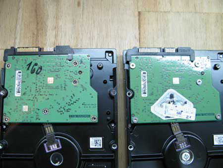 Hình ảnh của ổ Seagate giả (trái) và thật (phải) sau khi tháo vỏ.