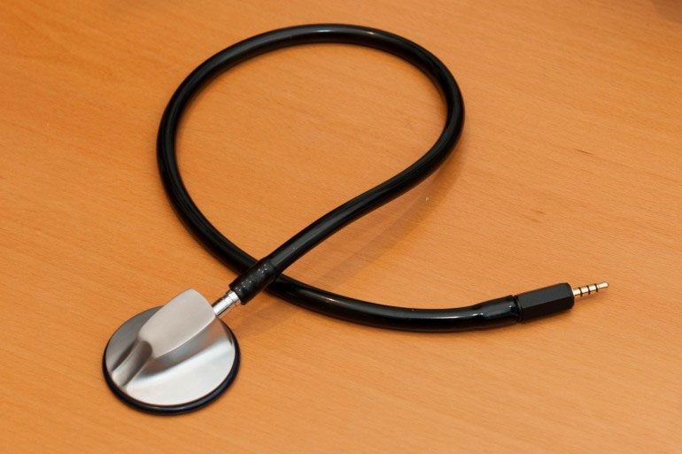 Smartphone có thể gắn thêm ống nghe khám bệnh.