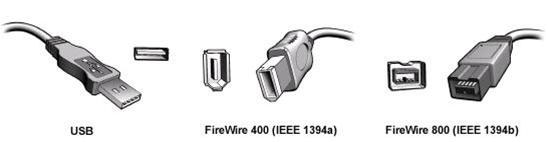 Các loại kết nối của USB, FireWire 400, FireWire 800 |