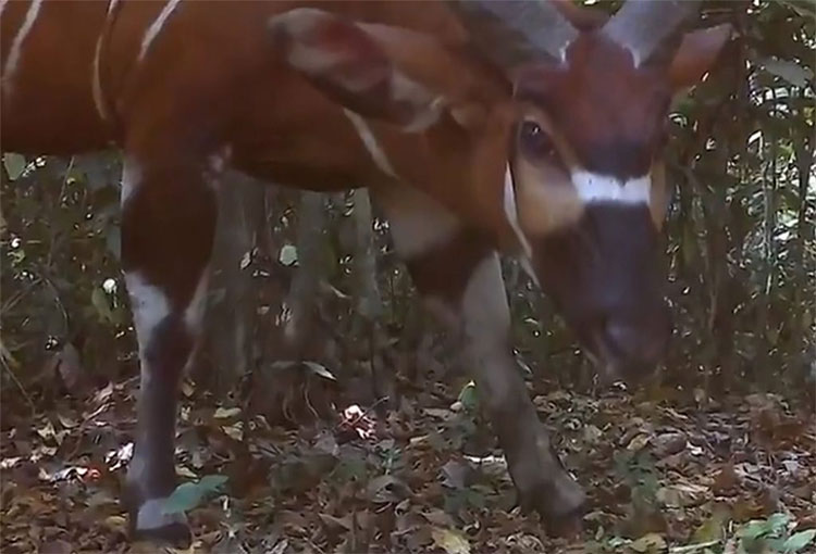 Một trong những loài động vật ít gặp đó chính là linh dương rừng lớn nhất thế giới (Tragelaphus eurycerus). Hình ảnh của loài động vật này khiến các nhà khoa học sau khi đặt máy chụp ảnh trong khu rừng không khỏi bất ngờ.